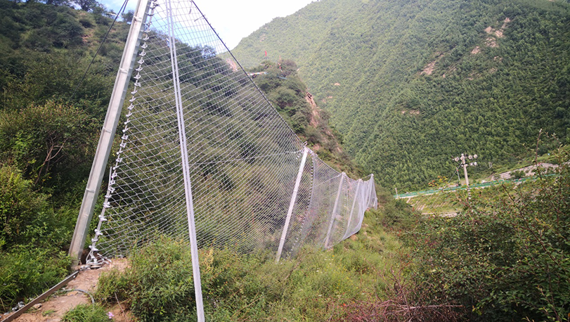 菱形钢丝绳网:网的型号T4/80,由抗拉强度不小于1770MPa的4mm直径钢丝链式绞织,网孔呈菱形,内切圆直径80mm,环链破断拉力20-50KN。